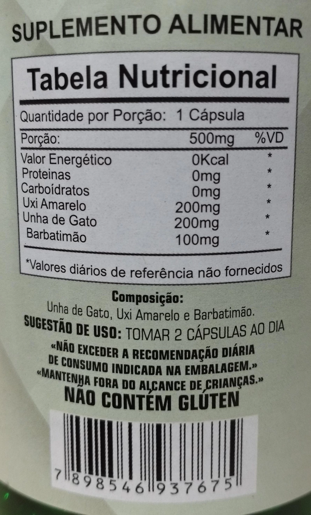 NOME DO PRODUTO: Uxi Amarelo com Unha de Gato e Barbatimão